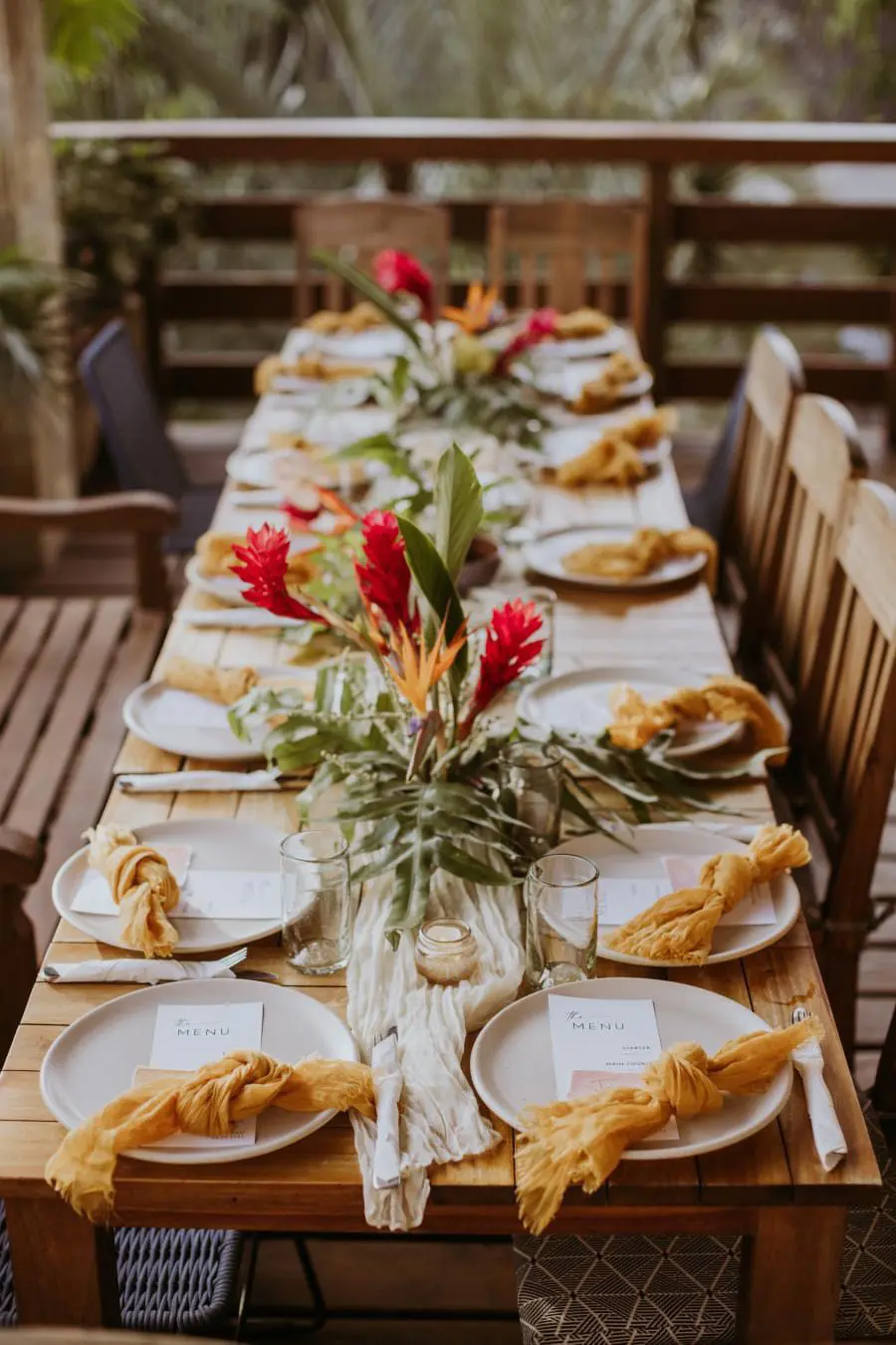 - Use locally grown, tropical flowers for tabletop decorations so that they match with the flowers we have throughout our gardens and rooms. We love working with the florist Adela, who grows her own flowers. You can contact her in English, Spanish or Spanglish via Whatsapp at +52-322-174-8644.