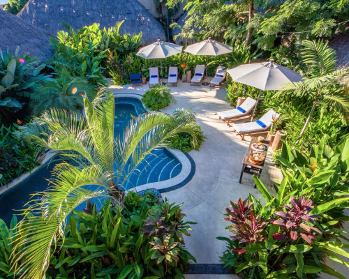 Cada bungalow ofrece diferentes comodidades, como duchas interiores y exteriores, patios privados y variadas disposiciones de camas. Cada uno de ellos, que lleva el nombre de nuestras plantas y enmarca nuestra piscina de agua salada, exhibe arte único y acabados de alta gama.